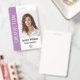 Personalice fácilmente este botón de identificación de foto de empleado de gran tamaño profesional de estilo púrpura con los detalles de su personalizado.