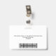 Personalice fácilmente este distintivo de nombre de empleado del Personalizado con foto, código de barras de exploración y logotipo comercial. Un sencillo diseño de negocio horizontal con colores mínimos en blanco y negro completamente personalizable en tamaño delantero y trasero, sans-serif condensados, fuentes básicas y modernas y un aspecto profesional y claro. Disponible con patio, clip metalizado o retráctil. Sin orden mínima.