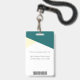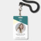 Esta insignia es una forma moderna y profesional de identificar a los empleados en el lugar de trabajo. Está diseñado con una paleta de colores azul y blanco y cuenta con un número de identificación único y una foto para una fácil identificación.