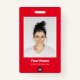 Personalice fácilmente este distintivo de nombre de empleado del Personalizado con foto, código de barras de exploración y logotipo comercial. Un sencillo diseño de negocios con colores rojos y blancos que brillan por completo personalizable en tamaño frontal y trasero, fuentes sans-serif básicas y modernas y un aspecto profesional y claro. Disponible con patio, clip metalizado o retráctil. Sin orden mínima.
