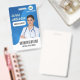Personalize these vertical medical personnel badges with an employee photo and name, along with multiple custom text fields for hospital or healthcare facility name, unit or floor, title abbreviation, employee ID number, or valid through date, along with the medical center logo. The title or role appears along the bottom in bold white lettering for easy identification. Customize with a barcode on the back if needed, along with return information or other details.