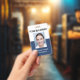 This stylish dark blue photo, logo, employee badge is easily customizable with your logo, name, job title, and photo. You can add more information to the back.