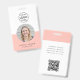 Crea una identificación personalizada y elegante con el logotipo de tu empresa, foto del empleado, nombre, título del trabajo y código QR en un diseño moderno y limpio. Esta plantilla de identificación vertical es ideal para oficinas, escuelas, clínicas, salones, equipos de ventas al por menor, personal de hospitalidad, ferias comerciales y otros roles que enfrentan al cliente donde la identificación y la marca son importantes. La parte delantera destaca tu logotipo y foto para una primera impresión profesional, mientras que la parte trasera puede mostrar detalles de contacto, información del sitio web, identificación del empleado o un código QR escaneable. Es una forma práctica y asequible de mejorar la presentación del equipo, apoyar la seguridad en el lugar de trabajo y mantener los detalles comerciales importantes fáciles de acceder. Personaliza cada sección para crear una identificación de personal elegante que se sienta moderna, organizada y profesional.