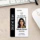 Cree una identidad de marca sofisticada y memorable con este diseño de insignia vertical. La estética limpia y de dos tonos presenta una barra negra gruesa que corre hacia abajo por el lado, contrastando perfectamente con el fondo blanco donde se muestran la foto y la información de su empleado. Este diseño moderno agrega un toque de estilo creativo mientras mantiene una apariencia profesional y organizada.
