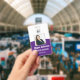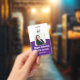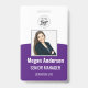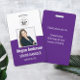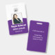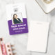 Personalice estas credenciales verticales con una foto y el nombre del empleado, junto con dos líneas de texto personalizado adicional para el número de identificación del empleado, cargo o título, ubicación u otros datos clave. Agregue su logotipo en la parte superior. Campo de texto personalizado adicional ubicado en la parte posterior para información de devolución u otros detalles.