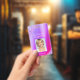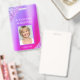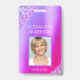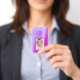 Tarjeta de identificación corporativa profesional rosa púrpura femenina con brillo y destellos, con nombre, foto y título del trabajo. Este diseño es simple y fácil de usar cambiando su nombre y apellido, así como su título y foto de la empresa.