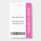 Personalice fácilmente esta placa de identificación profesional rosa para personal médico con sus datos personalizados.