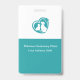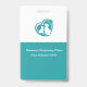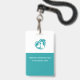Tema médico veterinario placas de identificación para personal de oficina en un diseño editable económico. Presentadas con cordón y diseño a doble cara en verde azulado y blanco con un logotipo de perro y gato que puedes usar o reemplazar.