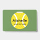 Insígnia personalizada para jugador de tenis y entrenador. Diseño de plantilla de pelota de tenis amarilla. Agregue su nombre, apellido, nombre de familia, apellido, letras iniciales, título, función, etc. Insignias elegantes para personal de oficina, personal, empleados de la empresa, voluntarios, compañeros de trabajo, colegas, trabajadores corporativos, maestros, entrenadores, gerentes comerciales, compañeros de equipo, instructor, jefe, tripulación, miembros, amigos, invitados, etc. Colores y letras personalizables. Cambie la cantidad para obtener el precio al por mayor económico.
