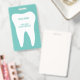 Placas identificativas para consultorios dentales con logotipo de diente molar blanco. Suministros para clínicas de odontología profesional y consultorios dentales. Personalice con el nombre de (empresa). Blanco y azul turquesa o colores personalizados. Incluyen un práctico clip o cordón.