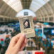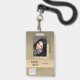 Etiqueta de nombre con fondo ombre de color crema, foto, código de barras y plantilla de logo. Personalice fácilmente esta insignia según su marca. Para personalizaciones adicionales, envíeme un mensaje abajo. Estaré más que feliz de hacer realidad sus deseos de diseño.