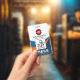Al dorso, el logo global está en la parte superior. Si lo desea, puede reemplazar el logotipo con una foto de un tamaño de 1.000 x 1.000 puntos. Después de esto viene la leyenda de los comentarios, es decir: "Si se pierde el retorno a", cambie el título para que se ajuste a sus necesidades organizativas. Su nombre y número de empleado son los siguientes, seguidos de los datos de contacto y un eslogan para dar a conocer sus servicios.