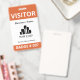 Insígnia de visitante vertical con un diseño simple en naranja y blanco. VISITANTE está escrito en letras blancas en negrita sobre un fondo naranja para ser fácilmente visible. Agregue el nombre de su empresa, logotipo y sucursal. En la parte inferior, el número de insignia.