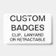 El personalizado imprimió personalizó 3,38" x 2,13" plantilla en blanco de la INSIGNIA. El diseño, crea, hace sus los propios. Su foto, imagen, texto, logotipo, gráficos en borde-a-borde a todo color imprime en el frente y la parte posterior - horizontales o diseños de la vertical. Hecho del plástico del PVC, el artículo, no se descolorará ni rasgará. Disponible con el acollador, el clip metálico, el clip retractable, o la insignia solamente.