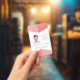 Añada sus propios detalles de foto, nombre y logotipo comercial a esta plantilla de identificación fácilmente aquí y ahora. Utilice una fotografía de estilo de identificación de perfil (vertical) para obtener los mejores resultados.