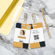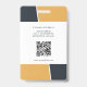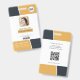 Tarjeta de identificación profesional con plantillas de foto, logotipo, código de barras y código qr incluidas. Este estilo de diseño moderno tiene tonos de amarillo y negro con base blanca. Diseño similar en la parte posterior, con dirección comercial, dirección web y un código qr del sitio web.