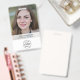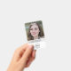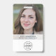 Tarjeta de identificación corporativa sencilla y elegante que se puede personalizar fácilmente con la foto de identificación de su empleado, nombre, posición, logotipo de la empresa, detalles de negocio y código QR o código de barras. El diseño es elegante y cuenta con una moderna tipografía minimalista y una bandera transparente. La imagen que se muestra es para fines de ilustracion y sólo se sustituye por la suya. La imagen de marcador de posición es de una joven con una chaqueta marrón de pelo largo.