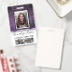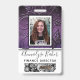 Falso brillo violeta púrpura y negro brilla deliciosamente detrás de una plantilla de foto con marco en blanco y negro. Actualice fácilmente el nombre y el título del trabajo profesional para cada insignia de empleado personalizada. También hay espacio para un logotipo de la empresa: elimínelo para dejarlo en blanco. La parte posterior presenta más brillo falso y una plantilla de imagen perfecta para códigos de barras de empleados. Disponible en muchos otros estilos y colores.