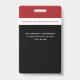 Un distintivo profesional de personal para profesores, educadores, personal del campus escolar. Trabaja para todos los tipos de escuela: privado, público, preescolar, elemental, secundaria y superior. La temática moderna de color rojo y negro. Añada fotos de los empleados, título de trabajo y lema escolar o credo.