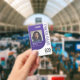Bandera de la prensa fotográfica moderna y de moda. Nuestro diseño presenta un diseño moderno y moderno con curvas violetas. Personalizar con foto, nombre, logotipo, fecha de caducidad y válida, así como número de identificación opcional del empleado. En el reverso se ha optado por un diseño tricolor curvado (los colores se pueden cambiar según la marca).