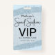 A tus invitados les encantará recibir estas invitaciones de la tarjeta VIP dulce azul claro personalizado 16. El diseño presenta un diseño de pincel purpurina falso con una letra escrita a mano moderna. Personalice fácilmente esta plantilla para su dulce fiesta de cumpleaños dieciséis. Los diseños son ilustraciones/gráficos impresos planos - NO PURPURINA REAL.
