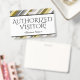 Este diseño de insignia glamuroso presenta el mensaje "VISITANTE AUTORIZADO!", y un nombre de empresa personalizable u otro mensaje personalizado. Una insignia como esta podría utilizarse para indicar que un visitante o invitado en un lugar de trabajo está autorizado para estar allí. [~Z0000307]