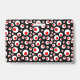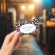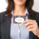 Este nombre o insignia de identificación tiene un brillante patrón circular abstracto de círculos blancos con círculos rojos más pequeños dentro sobre un fondo negro. Personalizar su nombre e información en el óvalo blanco con las plantillas.