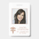 Gafete de hospital elegante para enfermera registrada con un logotipo médico de caduceo de oro rosa metálico falso. Para productos coincidentes o personalizaciones, visite JustFharryn @ Zazzle.com o comuníquese con el diseñador c / o fharryn@yahoo.com #zazzlemade #bohochic