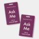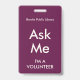 Tarjeta De Identificación Rosa de Fuchsia me pide distintivo para voluntario