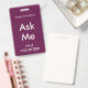 Bright fuchsia insignia rosa "Pregúntame" para voluntarios, profesores, docentes, guías, organizadores de eventos para eventos especiales, como bodas, ferias de artesanías, espectáculos caseros y de jardín, eventos caritativos, negocios y funciones corporativas. El color de la tipografía es marfil pálido, lo que le da a esta insignia un aspecto moderno. ¡Fácil de personalizar!
