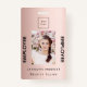 Una insignia para artistas de maquillaje, diseñadores de uñas, peluqueros, diseñadores, dueños de salones de belleza. Un rosa de oro falso de aspecto metálico. Añade tu foto, título, logotipo de la compañía, nombre de la tienda. Atrás: tu texto. Eliminar el código de barras si no es necesario