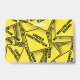 Una colección de carteles en forma de diamante amarillo con impresión en negro que dice "en construcción" hace un interesante patrón industrial o de construcción.