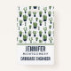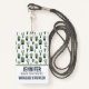 Una insignia de estilo rústico occidental. Diseñado con un montón de cactus verdes lindos en un patrón repetido. Específicamente, cactus espinosos de color verde, en todo tipo de formas y tamaños, cada uno sentado en su propio maceta de flores azul oscuro. Pequeños triángulos decorativos entre ellos. Personaliza con tu nombre y profesión.