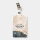 Insígnia de ID de salón de mármol rosa dorado negro acuarela. Elegante estilo de caligrafía de letra manuscrita en rosa suave acuarela dorada mármol para insignia de empleado profesional. ¡Perfecto para artistas de maquillaje, estilistas de cabello, cosmetólogos y más! Personalice este diseño personalizado con su propio nombre y foto.
