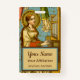 En este detalle de una espléndida huella devocional suiza neogótica, se representa a Santa Cecilia de Roma (siglo III) tocando un órgano de tubo recto contra un fondo acuático adornado con puntos dorados y estrellas. Su largo pelo quemado se le cuelga y se tambalea sobre sus hombros y sobre su espalda. Lleva puesto un traje de color crema de estilo medieval alineado en verde sobre un hervidor de naranja rojo oscuro. El vestido tiene un collar cuadrado y mangas de campanas. + A pesar de su promesa privada de virginidad, Santa Cecilia fue obligada a contraer matrimonio arreglado con un pagano llamado valeriano. Durante las festividades, se dice, Santa Cecilia "cantó en su corazón al Señor" en lugar de deleitarse; de ahí su patrocinio de músicos (especialmente organistas) y cantantes. El matrimonio nunca se consumó. Lo largo y corto de todo esto es que su nuevo marido, habiendo visto una aparición del ángel que protegía la virtud de su esposa, se convirtió al cristianismo y respetó su promesa. + Epilog: Santa Cecilia, su marido San Valeriano y su cuñado San Tiburcio fueron todos mártires. Pero, ¡esa es una historia para otro día! + Festín: 22 de noviembre + Crédito de la imagen (BNG 02): Detalle de una imagen antigua neogótica de Santa Cecilia, publicada originalmente en cromolitografía por Benziger & Co., Einsiedeln, Suiza, de finales del siglo XIX y principios del siglo XX, de la colección privada de ephemera religiosa del diseñador.
