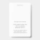 Mantenga una apariencia limpia y moderna para su equipo con estos patios de insignias verticales de identificación de empleados de personalizable, con un fondo blanco minimalista y un texto en serif de sans negros elegantes. Cada insignia se puede personalizar con una foto del empleado, un nombre y dos líneas de texto personalizado adicionales, lo que es ideal para incluir un número de identificación, el título del trabajo, el departamento o la ubicación de la oficina. Agregue el logotipo de su empresa en la parte superior para crear una identidad de marca unificada y profesional. El lado inverso incluye un campo de texto personalizado opcional, perfecto para instrucciones de retorno, información de contacto de emergencia o cualquier otro detalle importante. Diseñadas para la simplicidad y funcionalidad, estas insignias son ideales para empresas, escuelas, entornos de salud, eventos y más, en cualquier lugar donde se necesite una solución de identificación pulida y segura.
