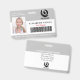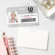 Moderno distintivo con licencia de foto. Diseño de fondo gris y blanco, foto individual, nombre de la empresa, profesión y nombre del empleado. Personalice su código de barras y detalles de contacto. Las tarjetas de identificación modernas facilitan la identificación de los empleados por los clientes y clientes. Para editar esta plantilla, haga clic en personalizar más adelante.