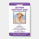 Tarjeta De Identificación Servicio personalizado Autismo de perro Apoyo Foto