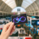 Tarjeta De Identificación Símbolo de infinito neón con colibrí brillante