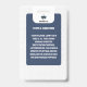 Presentando nuestra tarjeta de identificación simple del profesor en un diseño azul elegante, perfecta para cualquier entorno educativo. Esta tarjeta de identificación de la escuela Blue College es esencial para los maestros de escuela, ya sea que enseñen en la escuela primaria, en el jardín de infancia o en el preescolar. Añade fácilmente una foto de identificación o una foto de empleado para personalizar la placa. Es un accesorio ideal de regreso a la escuela, asegurando que cada profesor sea fácilmente identificable y profesional.