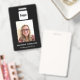 Simple y moderno distintivo de foto corporativa para empresa. Espacio para el logotipo de su empresa, foto y texto personalizado en el anverso y reverso, que se pueden cambiar o eliminar según los requisitos de su empresa. Diseño minimalista limpio y sin adornos.