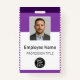 This professional employee ID badge is designed for easy identification and security within your organization. Featuring a clean purple and white design, it offers ample space for employee photos, names, profession titles, and company logos. The reverse side includes essential return information and a barcode for efficient scanning. Its durable construction ensures it withstands daily wear and tear, making it a reliable choice for any business seeking a sophisticated and practical identification solution.