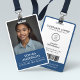Aumente la profesionalidad de su guardería con estas modernas tarjetas de identidad minimalistas. Con un elegante tema azul y blanco, líneas limpias y grandes fotos, nuestros insignios hacen la identificación sin esfuerzo. Cada insignia muestra de manera prominente la foto del empleado, el título de su trabajo y su nombre en un texto blanco grande y legible para un fácil reconocimiento. En la parte posterior, encontrará un toque profesional con su logotipo, un código de barras para un seguimiento optimizado e información de contacto. Asegúrate de que tu equipo destaque con estas elegantes y funcionales insignias.