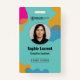 Elevate your professional image with this modern and vibrant Executive Assistant ID badge. Featuring a striking teal background adorned with abstract organic shapes in hot pink, mustard yellow, and soft olive green, this design exudes creativity and professionalism. The front of the badge prominently displays the wearer's photo, name, title, and ID number, ensuring clear identification. The reverse side includes essential information like validity dates, a QR code for quick access, contact details, and department designation, all presented in a clean, easy-to-read layout. Perfect for any office environment that values a blend of style and functionality, this badge is sure to make a lasting impression.