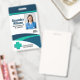 Create your own personalized employee name tags and badges using a vertical modern template that is easy to add your own photo, company logo and other important information to. The sleek design on these professional name badges is geared towards nurses, doctors and other medical staff, but the information and colors can be effortlessly changed to reflect your corporate brand or business.
