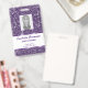 Tarjeta De Identificación Textura de purpurina morada falsa y foto y texto p