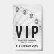 Esta insignia VIP cuenta con una versión en blanco y negro de una escena de ensueño al atardecer con una rueda de la fortuna en el fondo, lo que le da un aspecto atrevido y elegante perfecto para un concierto o festival al aire libre. La paleta monocroma aporta un toque moderno y acogedor, manteniendo al mismo tiempo un ambiente relajado al estilo de Coachella. El diseño utiliza fuentes simples y audaces en blanco y negro, con "VIP" en la parte superior y el espacio inferior para el nombre del evento, la fecha y "All Access Pass". El mismo diseño aparece tanto en el frente como en la parte posterior para un acabado cohesivo y pulido. Puede personalizar completo del texto e incluso apagar la foto para que coincida mejor con el estilo de su evento.