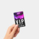 Esta insignia VIP cuenta con un diseño en negrita rosa, morado y negro, perfecto para un concierto al aire libre o un fiesta con un ambiente de Coachella. A lo largo de la parte superior, las siluetas de palmeras se extienden a través de un vibrante cielo rosa y morado, lo que crea un ambiente festivo divertido y enérgico. La imagen se desvanece en negro en la parte inferior, donde el nombre del evento, la fecha y "All Access Pass" se muestran en una letra clara y negrita de sans serif. En la parte superior, el "VIP" se muestra en el mismo estilo sencillo para un aspecto elegante y moderno. El mismo diseño aparece en ambos lados para un ambiente pulido y cohesivo. Todos los textos y colores son totalmente personalizables, por lo que puede hacer que coincidan perfectamente con su evento.