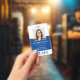 Tarjeta De Identificación TRABAJADOR MODERNO FOTO ID simple azul real