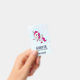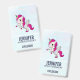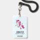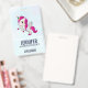 Nombra con un unicornio alado blanco con melena rosa, cola y pezuñas. El cuerno tiene anillos de color arcoiris y se parece a una golosina de caramelo. Este lindo unicornio está criándose en sus patas traseras. El corazón rosado dulce en la mejilla y las largas pestañas de una niña.